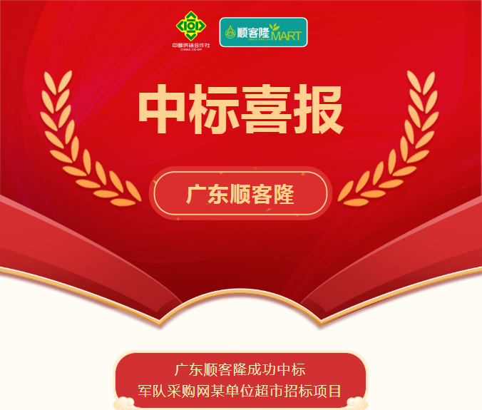 • 【喜訊】廣東順客隆成功中標軍隊采購網(wǎng)某單位超市招標項目 2025-04-28